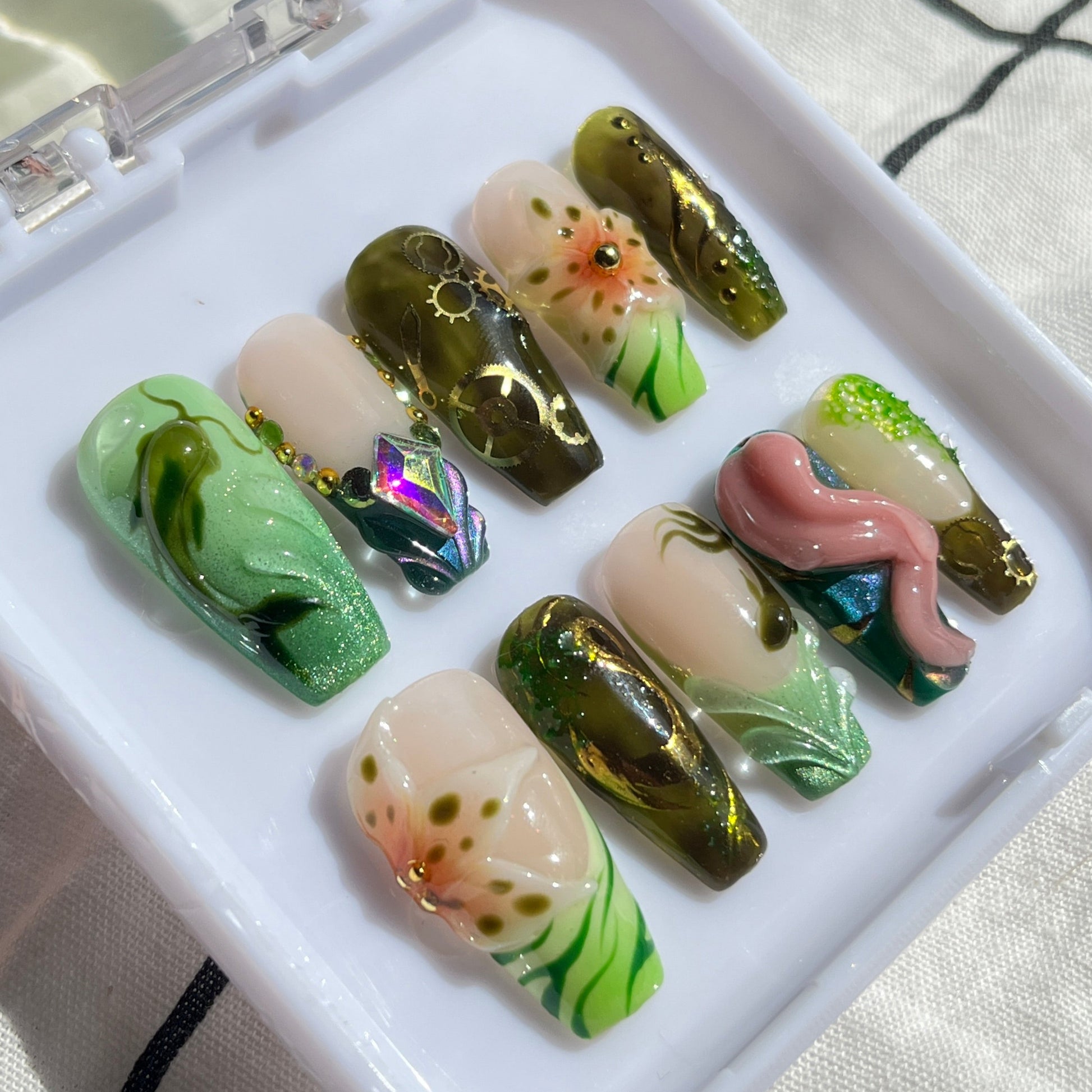 - First, I would need to have a general idea of how you want your nails, whether it's inspired by something specific or by an idea you have in mind. You can write your idea in the order comments or discuss it with me directly via email. If you have something specific in mind, you can send me inspiration images to the email arcariaworld@gmail.com